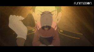 Mars Red seems ambitious, I'll give it that. While it isn't treading any new ground in terms of vampire lore or even between-the-wars fiction, it does seem to have all of its pieces lined up, with the stoic military man, his chatty cohort, the shota vampire, and the girl reporter – because what self-respecting fiction set in the 1920s doesn't have a girl reporter? The visuals are a nice mix of muddy browns and sudden moments of brightness that work nicely; the scenes on the stage where Misaki died are especially effective, even if her turning to ash doesn't quite have the impact that it seems to think it does. There's also a nice focus on the sigil of vampirism being on Misaki's tongue, not for sexy reasons, but because several of Salomé's lines involve tongues and poison.