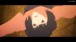 Yet if I were to judge this premiere on how striking it is, how much it kept my attention through its esoteric runtime, I'd have to give it top marks. There is a strong, unique voice in this show that I absolutely wasn't expecting. Given Funimation's heavy promotion I anticipated a fairly typical supernatural action series, yet Mars Red seems determined at every point to choose the least conventional means of anime storytelling available. While there is some action, any severe violence happens totally off-screen, communicated through implication rather than direct gore. Similarly, the meat of this opening story is never outright stated, leaving viewers to pay attention and remember seemingly offhand lines of dialogue to piece together the strange tragedy at its heart.