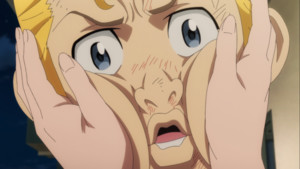If the show had gone for the straightforward route of having Takemichi just start his life over, I might still have had problems with it, because it could never not be weird to have the fully grown Takemichi courting his thirteen-year-old ex. I much prefer the direction the show actually takes, where Takemichi encounters Hinata's little brother, Naoto, and manages to convince him of the whole time leap scenario which ends up saving Naoto's life when Takemichi wakes up in his present day body in 2017.