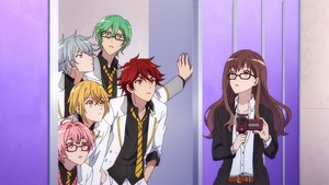 Maybe I've been spoiled by IDOLiSH7, but I found that I-CHU had very little to offer that hasn't been seen before. That's not inherently a bad thing – there's something to be said for the “if it ain't broke, don't fix it” school of genre fiction – but in hopes of snagging an audience, this series' first episode seems to go out of its way to wear its influences on its sleeves to the point where it's actively off-putting. We've got the fancy school that trains idols, the wacky president/principal, the huge cast of characters all designed to fit the player's/viewer's preferred tropes, the potentially sad backstories for some of them, and, to round it all out, the one female character who doesn't have a name. This last one is perhaps not a fair criticism since she's very likely to be the nameable player character in the mobile games this show is based on, but it's still a familiar genre staple.