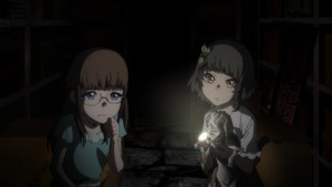 Mostly, however, I didn't find myself thrilled with the symbols and plotline, to say nothing of how gratingly cute Kimi came off – she feels like a child written by an adult who has never (or rarely) interacted with one. Yuri is a little better, but too mature-feeling for a 10-year-old, like the writers are trying to strike a balance by painting the two girls as halves of a single character. Add in the universal shroud of gloom over the imagery and the fact that Kimi's dub voice felt sort of nails-on-a-chalkboard to me and this just isn't pulling off what it wants to. Raven of the Inner Palace is looking like a better bet for a supernatural mystery this season.