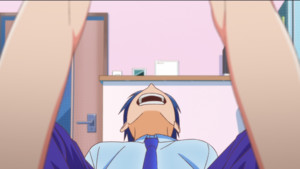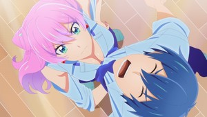 Though if that's your main reason for watching this show, you'll be well fed. The single positive aspect of this premiere is that it looks really, really nice. Occasionally the saturated colors can get a bit much, but generally the candy-coated aesthetic looks really nice, and it's utilized expertly to deliver eye-catching shots and evocative frames. The visuals aren't enough to save the premise, but they're good enough to add a whole extra star onto this score, just for making it far more tolerable than a lesser production could have. The fanservice is rather rote, but it's at least well-illustrated, and it's the one aspect of this style of romcom the show manages to deliver well.