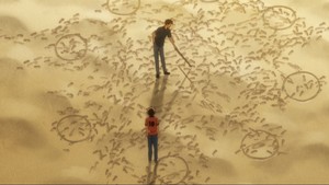 It also helps that the episode goes on to make Ashito much more sympathetic than he might seem at first glance, and all of the side-characters around him are well-developed enough to complement his story. When Ashito ruins the game (and his chances of getting recruited to a popular high school), it seems like he is doing the usual thing where he lets some bully's taunts about his skills get the better of him. It isn't until later that the bully, genuinely full of remorse, confesses that Ashito lashed out because he was defending his mother, who herself is a well-drawn character, a stern but obviously loving single parent who struggles to make ends meet in the backwater town that her family is stuck in. Outside of Tatsuya and Ashito, none of the other kids or adults have anything revolutionary going on, but it's clear that every person in this story has their own goals and dreams; they all feel very human.