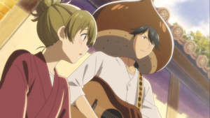 That stands to be what this series is as a whole – just lovely, although certainly not without its angst. The confectionery, run by an older couple, is also home to two young people who are trying to work through some pretty heavy subjects in their lives. Nagomu, finally returning home after ten years, is coping with what looks an awful lot like a failed career as some sort of chestnut-themed singer while also coming to terms with the overheard conversation that sent him packing a decade ago. That almost pales in comparison to poor little Itsuka, whose father, a distant acquaintance of the shop owners, basically dumped her with them a year ago. That's put Itsuka in an unbearable position – a piece of her seems to know that the couple regards her as their grandchild and truly love her, but she also feels like she has to go above and beyond to make herself “valuable” to them, to prove that she deserves her place in their home. Presumably telling her that she would someday inherit the confectionary was intended to show her that they had no intention of throwing her out; instead it's become an additional burden on the girl, who now feels that she must be an even more determined worker to prove that she's allowed to be their grandchild.
