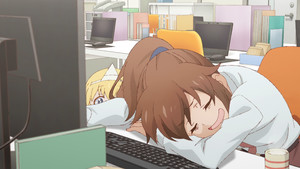 This episode is built around the joke that working at your average Japanese company is more terrifying than ghosts. Shachiku is a hard worker and is thus exploited by her lazy boss who forces her to do all the work he can't be bothered with. This results in late nights working all alone. And even when faced with a supernatural being coming to kill her, she simply works on. Or to put it another way, it's only a matter of time until she wakes up reincarnated in another world.