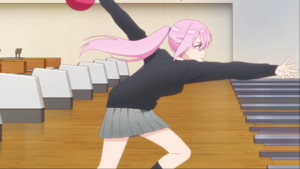 More than that though, it also undercuts the romance angle of this whole endeavor. Especially poor Izumi, whose whole gimmick is he's got cosmically bad luck that results in pratfalls and comedic accidents for his dashing girlfriend to save him from. So when those jokes fall flat, it leaves him a boring blank slate who mostly exists to tell us how cute and/or cool Shikimori is. That's on top of the friend character who just states the point of any given scene out loud, proclaiming “It seems we're going to become better friends” when they all go out bowling. Shikimori herself is easily the most interesting character, both because she's the most active, and that she obviously has a secret side she's trying to hide from her boyfriend. The closest this episode comes to compelling is when she wholeheartedly reassures her hapless bae that he doesn't need to worry about being worthy of her – she likes him and wants to stay by his side, and that's all that matters. That's a nice sentiment, but it also gives half our central couple permission to not be interesting, and that hinders any chance of the romance being engaging.