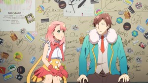 There is, of course, something a little sad about the whole situation when seen from Asahi's point of view, but this is largely kept in the background of the episode. While I could see it coming into play later, right now it's all about how nicely things work out for the two of them, to say nothing of how confused everyone else is. The art has translated very nicely from the manga, and the candy-bright colors on Asahi work really well to emphasize her personality and devotion to the idol lifestyle. The CG dancing, while better than some, still feels a little uncanny, though, in ways I can't quite pin down. In any event, this is worth checking out, and for added fun, see if you can spot the sticker on the wall that says “Austin of Texas,” which I found unreasonably funny on top of everything else.