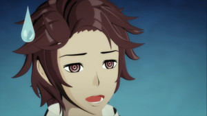 Of course, it's not just that it's badly-rendered 3D CG animation; it's that it uses every single budget- saving animation trick imaginable. Long shots of characters talking with no camera movement? Check. The same few frames of animation looping over and over? Check. Zooming in or slowly panning across a single establishing shot? Check. Having only a single character model per character so that none of the damage they take is visible? Check. Flashing back/reusing character animations from mere minutes before? Check. Turning the background into speed lines during fight scenes? Check. Cutting away at the moment of impact to avoid having to animate it, instead showing a black screen with a flash of light? Check and check.