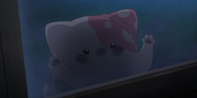 Again, I don't necessarily consider this a “flaw” on Kinokoinu's part, since the mood is clearly an intentional choice, but what I do think is a problem is the way the premiere doesn't manage to pick up the pace or provide any kind of meaningful shift in tone after our protagonist finds himself the owner of a magical, sentient mushroom-abomination that is vaguely shaped like a dog. His editor is thankfully reasonable enough to at least be curious (and somewhat concerned) about Kinokoinu's arrival, but Hotaru just can't be bothered to care, because of… well, you get the idea. Given the mushroom dog's design and the general way these sorts of cartoons tend to go, you'd think that the little pup would liven things up a little but the premiere is as lugubrious as ever right until the very end, all the way through the scene where Kinokoinu burns Hotaru's mementos of his old dog to help him “move on”.