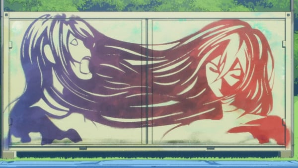 Granted, I don't expect this anime melodrama to serve as a robust introductory survey to the grand tradition of graffiti art, but I'm impressed enough that we're getting namedrops for Keith Haring and Jean-Michel Basquiat to begin with. It tells me that the show is genuinely passionate about the subject, which, in turn, makes our protagonist Koichi a much more engaging guy to follow. He's not just some mouthpiece that exists to spout the findings of his author's latest Wikipedia dive; you genuinely get a sense for why this guy is so inspired by these artists, and how that passion might be met with equal despair and disappointment by his future self. We also perfectly understand why he might be so drawn to Eren, the titular southpaw, given that she lives and breathes her artwork in a way that Koichi can still only dream of embodying.