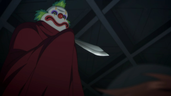That's the major issue with this episode: it wants to be an homage to classic detective fiction with the twist that its detective can come back to life every time he's killed, but it isn't quite going about it the right way. Tatsuya Outsuki is the son of a great detective with the same ability, but unlike his thrill-chasing father, he's content to do little investigations about cheating spouses and lost cats. He gets to do both in this case – when he follows a potential cheater onboard a cruise ship, he also ends up asked to find a lost kitty named Lulu. The two are related, in that the cat belongs to the maybe-cheater, and the connection between the two is the most intriguing piece of the puzzle, not the least because it made me wonder who takes their cats on a cruise ship. There's also a killer pierrot (not a clown; the distinction may be important) and a cop on vacation, so the pieces are relatively solid.