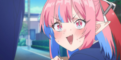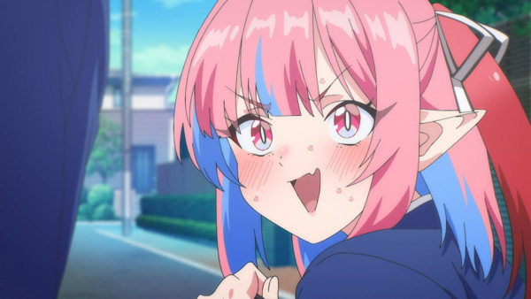 “In other words”, this is an ever-so-slightly more salacious-than-usual spin on the usual sitcom setup, with the elevator pitch being, “What if the sexy succubus was even more of a hopeless virgin than her human boyfriend?” The jokes remain squarely within this wheelhouse for the duration of the premiere. Kanan is supposed to be a sultry dominatrix, but she gets a nosebleed when she thinks about…holding hands! Kanan is supposed to be an assertive demon from the pits of hell, but she gets terribly flustered…when she tries to address Youji by his first name. Do you get it? The show is running with a premise that is inherently perverted…except this time, it's wholesome.