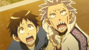 The initial encounter with Shirou takes up a significant chunk of this episode, but the scene is clever enough to be worth the extra screen time. Shirou's intellect matches up to Asahi's ability to lie, setting the stage for a heavyweight showdown between stupidity and ineptitude. The ensuing exchange of threats and trash talk is quite funny, and the show also has some fun with Shirou's more dog-like traits. There's something undeniably amusing about seeing an angry wolf man stop halfway through a rant to catch a stick in midair. Asahi's attempts to act tough are also worth a laugh, and the hostility between the two guys makes for good comedic chemistry.
