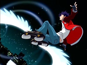 High speeds, big tricks and humourous situations are all in a days work for Air Gear, the latest sports crazed anime to hit our shelves in recent times courtesy of Madman Entertainment. Don't be fooled into any insecurities though as Air Gear is as formulaic as they come, combining the best clichés the shonen genre has to offer with fanservice, bad jokes and a plot which rivals that of a childrens show. Despite all of this though, Air Gear still manages to ooze enough 'coolness' from its music and animation that it is quite easy to forget many of its flaws whilst your reaching for the remote to turn the volume up during the rocking opening theme. Air Gear is based around Air Treks (ATs) a modified set of roller blades containing a small motor which gives riders the ability to achieve high speeds and big airs. These 'Storm Riders' have formed an underground competition of sorts, allowing groups to compete against one another in order to move up the rankings and gain better status. As is tradition with these types of plots, a poor sapless down on his luck guy is given the lead role and is poised with an untapped potential set on sending him to the top. Air Gear does not disappoint one bit, introducing us to Itsuki Minami (Ikki) an 8th grade freeloader living with four sisters due to some undiscussed reasons. One night Ikki decides to venture into a forbidden room he comes across in the hallway, unsurprisingly discovering a number of AT's and an emblem for the sister's group Sleeping Forest. |