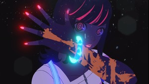 Akudama Drive's premiere is a lot of things, but it's first and foremost a declaration of aesthetic intent. This isn't a look you stumble into out of convenience. The boisterous pop art flavor of Danganronpa accents the setting and character introductions well—always on the cliff's edge of garishness, but not quite teetering over into the hot pink abyss. Complementing that, it's impossible not to draw visual comparisons to Blade Runner (both original and 2049), and the show's producers have also not been shy about the influence of Quentin Tarantino's films on the scenario. Just compare the plot of Reservoir Dogs to the anime's second episode, which is also called Reservoir Dogs. I'm always a little wary of anime leaning too hard into Hollywood—to an extent, I look to anime as an escape from the increasingly monolithic Hollywood monoculture—but Akudama Drive has tempered those fears with its fearless eccentricity and edginess. Its aesthetic potpourri makes it both easy to poke fun at and impossible to take seriously, and I love that! One of the main characters leaps into and singlehandedly commandeers a blimp. Another character sews up her injuries too fast to be killed. This is supposed to be absurd and fun.