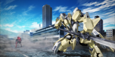 With Amou and Gai once more onboard their mech, it's at last time for AMAIM to introduce the third pilot we see all over the OP...next week. In this episode all we get from our new addition is her sad backstory and a fairly impressive fight where her own AI sidekick takes center stage. So it'll be at least a week until we actually get a read on this new girl's personality – or name, for that matter – as we instead follow Amou and Gashin awkwardly bonding while running an errand.