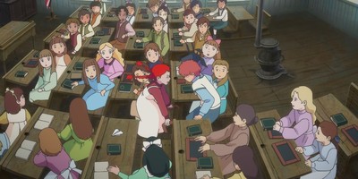 Gilbert isn't a jerk. He's just a thirteen-year-old boy who hasn't figured out how to be nice to a girl he's attracted to. And he immediately realizes that he was wrong and wants to make up for it. That's more than we can say for the teacher, whose decision to make Anne sit with a boy isn't acceptable socially at the time. We do lose the implication that he was particularly upset with Anne for interrupting his time instructing (and courting?) an older student, which is present in the book, but since Gilbert wasn't hurt physically and was taking the blame for making Anne angry, it's not hard to see that the teacher is acting just as badly as the students.