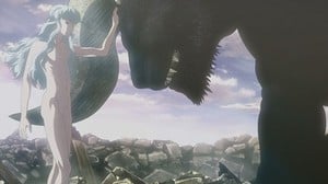 In the end, the only character with a complete arc in this season was Nina of all people, who takes Luca's advice meant for Guts and applies it to her own life. After experiencing her own incubation and re-hatching inside an ordinary barrel in the ooze-flood, Nina is finally able to accept her crippling weaknesses and make a constructive choice on her own. In an echo of Berserk's pervasive dog-eat-dog themes, Nina recognizes that the cycle of violence and fear around her is perpetuated by strong people hurting the weak, and weak people hating the strong, even between people who love each other like she loved Luca. She accepts that she will never be like her mentor and chooses to travel instead with someone whose weakness she can relate to and understand: Joachim. Just like Nina, Joachim can only work up enough courage to apologize profusely for his betrayal, fully expecting that she'll never want to see him again. However, Nina takes Luca's advice about communion vs. protection to heart, realizing that just as the strong must support the weak physically, the weak must support their fellow weaklings emotionally. "I will go with this man, who has the same weakness and sin. If I'm with him, I think we can both become a little stronger." It's a beautiful and surprising note to end the season on, a friendly reminder that for as cruel as Miura can be to his characters, he always does his best to empathize with their struggles.