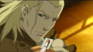 When you hear the word “Gonzo” there are certain associations that spring to mind. Hunter S Thompson. Copious amounts of hallucinogenic drugs. Skipping the plot and slamming straight into the action. For the modern anime fan, girls clad in fetish wear, zooming around shooting alien beings. While Hunter S. is sadly not present in Blassreiter due to being dead at time of production, I am pleasantly delighted to report that Gonzo otherwise live up to their name in this anime with a savage intensity that pulls no punches. Visually from the very opening sequences of a motorcycle race the spectacular blend of CG and traditional animation sucks the viewer into a frantic world. In the Germany of the not-too distant future, a vile plague is resurrecting the dead as hideous biomechanical monstrosities known as demonics that can assimilate with non organic objects. We start the action in medias res with a hideous zombie attacking the German Moto GP (as sponsored by bridge'stoned tires and sopwith airlines. I laughed like a lunatic). Then the biomechanical hell machine, redolent with Ni: θ of nitro+ fame's talented style came climbing out of a fiery wreck, still shooting. In short it took two short minutes and I was caught hook, line and sinker. |