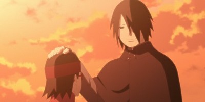 The Parent and Child Day festivities conclude as the Uchihas get their turn in the spotlight. After coincidentally finding himself back in town on Parent and Child Day, Sasuke decides to use this opportunity to spend some quality time with his daughter. However, due to Sasuke's strained relationship with his late father, he's unclear on how a good father is supposed to act, and despite his best efforts at behaving like a doting daddy, Sarada proves unreceptive and embarrassed. After receiving several pieces of bad advice from Kakashi, Sasuke seeks answers from Sakura, who informs him that he should let his guard down and simply act normally around their daughter. Taking this to heart and remembering his childhood interactions with Itachi (who was more of a father to Sasuke than their actual father), Sasuke finds Sarada at the training grounds, where the two practice shuriken-throwing and discuss Sarada's aspirations of becoming Hokage.