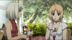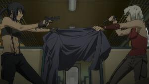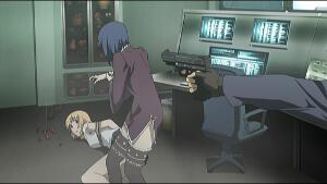 The story isn't all action and flashbacks though. Regular cameos of a speed freak taxi driver and a girl who holds down as many jobs as you can poke a stick at provide regular comedic relief. Maria herself is also a very much happy-go-lucky sort of person, providing many fun moments as she seemingly enters a world of her own despite the constant endangerment of her life. However as the story finally picks up, all of this begins to change. Maria becomes much more serious, the great scoop Minoru started chasing becomes one platted in stories of sadness, and the motives behind Snake become a little more apparent. I say a little because Snake is a very confusing group. Their leader Alphard has many ties to CANAAN and wishes to kill her, and yet she constantly passes up the chance when it's there. Alphard's sister has a possessive love for her sister that goes beyond sane, and their chief Cummings has a hidden love despite being treated like a punching bag by the very same girl he likes. Snake's reasoning behind their attacks and the use of the UA virus are never fully explained either. If their leader wants CANAAN dead, why go to the trouble of trying to destroy a building full of world leaders? It's a rather over sized ploy if the only explanation given is just get CANAAN involved in a predicament she couldn't escape.