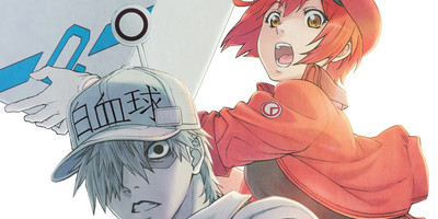 Animations depicting the inner workings of the human body – sometimes in very fanciful fashion – have been around nearly as long as animation itself has, and the anthropomorphizing of cells is probably not new to this 13 episode series and its source manga. However, I don't believe any previous effort has hit as successfully at this franchise has. Original manga-ka Akane Shimizu's concept was a simple but effective one: depict the functions of the body as if the body was one giant factory and living complex and the cells are the people living and working in it. Director Kenichi Suzuki (Jojo's Bizarre Adventure 2010s edition, Drifters) and studio David Production have taken that source material and brought it to the screen in a form that is nearly as educational as it is entertaining. For the concept to work, the production has to succeed at three factors: how it depicts the interior of the body, how it portrays the cells and gives them personalities and duties based on their functions, and how it generates suitable crises. Each factor is, thankfully, a resounding success. The setting design is sufficiently imaginative in how it envisions the structure of the body, whether it's the factory-like structure of the lungs (complete with fans, air compressors, and bottling stations for draining CO2 and filling up oxygen), the temple-like portrayal of the heart, or the school-like portrayal of bone marrow, all the parts and locations are extrapolated wonderfully from their actual structures and functions. Major arteries might be paved thoroughfares, veins might be tubes, and the smallest capillaries might be cracks between buildings. Manholes, sewer grates, and secret doors allow for transmigration (i.e., the ability of white blood cells to move through tissues rather than just the circulatory system), while much of the structure of the body is made up of apartments housing generic cells. The creative depictions of the cells are also a delight. Red blood cells – which can be male or female – all wear red jackets and hats over black shirts and blue shorts (for female ones) or trousers (for male ones). They either carry or cart around boxes of canisters containing oxygen or carbon dioxide, depending on where they're headed. White blood cells have varying appearance depending on exact role; neutrophils (the most common type) are always male, use knives, and have both white skin and a white combat uniform, whereas macrophages dress like 19th century-era nurses wielding cleavers or spiked clubs, killer T cells wear black uniforms and act like Marines, and a helper T cell (which in the body directs other T cells) are dressed as military commanders. Several other less common specialized cells also appear, while generic cells are just guys in white T-shirts that say “cell” in Japanese. The highlight is definitely the platelets; in reality they are only 20% of the size of red blood cells, so here they are depicted as adorably cute kindergarteners in light blue smocks and white hats and take on the roles of construction workers. By comparison, invading allergens and bacteria appear as monsters, viruses commonly attach to cells to transmute them into zombies, and cancer cells are deformed regular cells. Though the personalities involved are largely secondary to the conceptualization, they still help carry the series. The primary focus is on a female red blood cell (typically called just Red Blood Cell, here RBC for short) and a neutrophil (typically called just White Blood Cell, here WBC for short) she improbably keeps encountering. Though RBC is somewhat of a space cadet, her fierce resolve to carry through her job becomes important late in the series and she is endearing in her incompetence. WBC is a bloodthirsty maniac when confronting invaders but a nice guy during downtime and takes to specifically looking out for RBC after a while; the series has no hint of romance, but shipping the two as a couple would not be a stretch. Most other named cells also have colorful personalities, whether it's the memory cell who is always freaking out over legends, the Dendrite who facilitates communication but also has a sly side, or the marcrophages who remain mild-manners even while bloodily slaughtering germs. With no real ongoing plot, the series is entirely divided into 1-2 episode vignettes. Each spends at least some time showing the cells going about their daily business before focusing either on the calamity of the day or a flashback to when the prominent characters were up-and-coming cells, with regular (and sometimes repetitive) narration throughout explaining what each cell type is and what they do in an actual human body. Crisis scenarios vary just enough to avoid seeming too repetitive, ranging from infections to a scrape wound to food poisoning to allergies to the most serious incident: hemorrhagic shock. Bits of humor freely mix in where appropriate and cute moments (mostly involving the platelets) are about evenly balanced with violent, often very bloody action sequences – and yes, that is meant both literally and as a pun. Those scenes are much more graphic than they need to be for content age-rated at 10+ and otherwise accessible to upper elementary or middle school-aged kids, so I am curious about the creative intent there. Beyond the quality design features, the visual technical merits are not especially impressive. The animation cuts a lot of corners, with freeze scenes used during narration, few sustained action sequences, and several instances of recycled footage. More complicated movements are generally reserved for the oft-repeated episode intros, although those can show an impressive array of independent animated bits. Contrarily, the full symphonic orchestration of the soundtrack consistently supports the content well in both lighter-hearted and more dramatic moments. Opener “Mission! Health First,” which is sung by four of the most prominent seiyuu, is a lively number whic