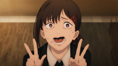 • Kids Say the Denji-est Things! Lots of great options for best line of the episode this week, from Power's declaration of her intent to win a Nobel Prize to Himeno casually announcing that she had to knock Kobeni out for drinking toilet water. Then there's Denji's perfect shit-eating grin in this shot right here, which easily earned the biggest laugh of the night from me.