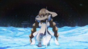You really have to appreciate it when a story goes out of its way to try and show what's going on with the less important characters. That's what Chivalry of a Failed Knight does this week: its tenth episode turns the spotlight to Ikki's sister Shizuku. Last week we learned that she would have to compete against student council president Toda Toka, a grossly overpowered blazer who came in to save the day during the golem fight. Unfortunately neither Shizuku nor Toka have been developed enough to make this focus shift really work, and it ends up just feeling like a standard narrated fight scene from any number of shounen tournament stories.