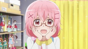 The pink-haired would-be mangaka's journey to serialization continues in this week's Kaos-focused Comic Girls. With Koyume recently scoring a serialized miniseries, Kaos is now the only member of the core group whose work hasn't been published. Feeling dejected and inadequate, she offers to act as an assistant to Fuura, who helps her regain some of her lost confidence. The episode's loosely connected second half finds Kaos making her first solo pilgrimage to Akihabara and buying her first pair of glasses. Although her new specs help her see the world more clearly, they also make little mistakes in her art more noticeable, causing her to quickly rethink the purchase.
