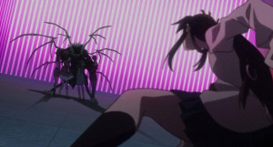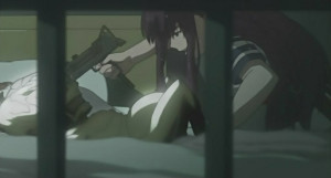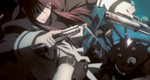 There's also a successful introduction of a more comic element (through the revealing of the more jovial side of Buddhist monk and Ouri's surrogate brother, Keisei) and then the show flips back towards the more serious as the core concept that the premise rides on is properly introduced: Shikabane. That is to say, corpses that have lingering regrets who refuse to leave this world. Or maybe they just want to hang around because after all, this is an anime, and such a fate pretty much guarantees anyone in this position some kind of crazy super-power. With this comes the concept of the Shikabane Hime – or Corpse Princess', to use English where possible – and the introduction of Makina, the Corpse Princess after which the show is likely titled. In this role, she is basically a Shikabane that hunts other Shikabane, and does so while dressed in a high school uniform. As you do. The Shikabane in question for this episode is at the core of a murder mystery surrounding the town, and has become convinced that he is a Vampire. This isolated piece of plotting is structurally sound, and does a fair job of not only establishing Corpse Princess' secret world of the supernatural, but also how it bleeds into the reality that the citizens who live on the outside of this accept. It also climaxes in a gun-toting action sequence that sees a wild fire set in Makina's eyes, and an animation style of exaggerated movements and expressions that wouldn't be too out of place in FLCL. This sequence is a joy to watch, and is something to be savoured. Sadly, this isn't because it sets new benchmarks for adrenaline and quality, but because what quality is there will seldom be re-visited. Same again the way in which a considerably convoluted set of ideas gets tied together with a degree of coherence.