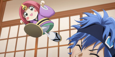 The final positive comes in the form of another joke that actually works. The aforementioned fight between Hajima and Soji has Hajima take on the body of a giant, muscled golem that proceeds to kick Soji's tail right into the dirt. Soji says he admires Hajima's strength in a moment of camaraderie, leaving an exorcist witnessing things to summarize the event thusly: “Weird energy here.” It's like, yup, that definitely is a way of putting it, seeing how he just saw a blue-haired flamebaiter become better friends with a weird puppet doll thing whose kawaii head does not fit the aesthetic of the girthy cyborg body it's attached to. Again, I laughed.