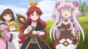 Unfortunately, not all the humor is A-material. It's skirted into other episodes, but fanservice is very oddly on display as an element in this one. My issue isn't just with the suspect ages of the characters (though hey, there is that) but also with the series seemingly trying to deploy these elements specifically as a supplement to the humor here. The timing just ends up wildly off, however, and the content isn't presented as ridiculous so much as weirdly uncomfortable to make the laughs come easily. So we get bits like a cow nudging its face into Pauline's boobs or Reina deciding to do laundry in the woods after a fall. There are points where it's so close, like Mavis avoiding the embarrassed reaction of the others to a skirt-blowing wind attack, only to drop her into that pratfall anyway when parts of her actual clothes get blown off. It's all just out of place, exemplified by a bizarre ending gag centering on the characters being surprised by a ten-year-old's pronounced chest.