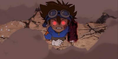 It's a setup for an institution integral to Digimon anime series: Dark Evolution. It's interesting that Devimon's transformation here is its own Dark Evolution (despite happening to a pretty dark fellow already) and Tokomon's explanations seem to paint this as a known, understood phenomenon in this iteration of the Digital World. That layer of expectation is almost a necessity as we see what unfolds; Viewers have been speculating for months on the possibility of MetalGreymon undergoing an evil evolution into Mugendramon, so at this point depicting that momentously malevolent event is less about the “What” and more about the “How”. And that gets to be the engaging surprise of this episode, since the answer is DoneDevimon friggin' eats Taichi. It's a distinction from previous shows' versions of Dark Evolution, coming about not because of hasty personal failings or impulses by the characters, and instead provoked by extreme outside factors exacerbating the anguish of those involved (indeed, demonstrated just earlier by Devimon's own corruption). It almost speaks to the harsher, more violent Digital World portrayed in this new series, where progressing through it is so predicated on fighting and little more. More than any of his previous magical power-up moments, that makes for an interesting demonstration of Tokomon/Angemon's tempering influence, him trying to be a mediator to these other entities that seek only destruction at every moment they meet.