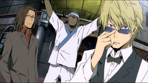 The production quality is top notch with fantastic attention to detail prevalent in the cityscape. Character design and animation was also commendable for both being nicely done as well as for being memorable; it's quite easy for one to realise if a cosplayer was exhibiting a character from this show. There's a combination of jazz intonations and more subtle piano compositions that highlight the high school life side of things; it's typically when you hear this that you're led to believe all is normal once again. Voice work was also superbly done. Of particular note is the performance of Patrick Seitz for the part of Simon, the Russian sushi vendor. In Japanese this particular character has always felt very awkward as apart from the disjointed wording, I wasn't all that convinced that the character was meant to be from Russia. In English however, the accent was more clearly defined. Crispin Freeman's voice as Shizuo was also another part which I thought felt more genuinely menacing than its Japanese counterpart.