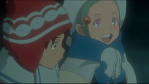 Quick plot points are indulged, and it only takes a moment to realise that the entire mythos from the television series has been scrapped. Formally first meeting as teenagers in other media, here Eureka and Renton waddle together on their stumpy kiddie legs, their combined adorableness almost tearing through the sedate colour-key. The night setting is a narrative necessity though – in this retelling Eureka is adverse to sunlight.