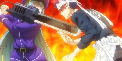 That may be a bit harsh, since there has always been an element of spectacle involved. But we barely see any prep or cooking now unless it's distinctly unusual, such as beating egg whites with a chainsaw. Even Soma's use of cheap ingredients has become background noise even though that's as much his signature move as anything Noir does, and when you pair that with the decreased foodgasms and fanservice alongside the pared-down use of the supporting cast, this episode really begins to leave a foul taste in your mouth. And that truly is too bad, because time was, this series was a lot of fun.
