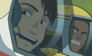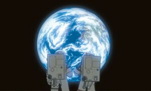 It is here where we meet Takeru and his friends Kazuma and Bis. They may appear to be an odd trio at first, but their love for illegal racing and Takeru's fascination with Lunar Terrain Vehicles means that these boys soon find themselves facing the wrath of Eden's disciplinary council and resulting volunteer service. However whilst out unsupervised on a routine surface check, Takeru witnesses an object crash onto the surface. Inside the crater is a number of photos and items that appear to be from Earth. Armed with this knowledge, Takeru is soon swept into a conspiracy that threatens to destroy the very beliefs Eden has bestowed upon its citizens. Not wavered by the looming council threat, Takeru and friends decide that travelling to Earth is the only way to find out the truth and learn why Eden has been hiding it for so many years. Unfortunately saying much more would diminish the impact that follows these events. However I will say that the series runs with numerous themes, all of which come together in a satisfying ―if a little predictable― ending. The pacing will certainly draw a few dislikes from viewers though. After the initial three episodes, things almost grind to a halt as the series takes on a new path that helps further the story and its meanings. Thankfully the seventh and final episode springs things back into life and with a bunch of new twists emerging by this stage, the pay-off is certainly worth the wait.