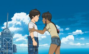 When the time comes for a commercial company to celebrate their 35th anniversary you would usually expect to see a few advertisements, a sale, or maybe even a limited edition product. What you wouldn't expect to see however is an amazingly gripping seven episode OVA series being created under the premise of a promotional project. And yet that's what Japan's infamous Nissin Cup Noodles have managed to do here with Freedom. Drafting in childhood legend Katsuhiro Ōtomo and animation powerhouse Sunrise, this three hour long series will take you on an astronomical and thoughtful journey as you follow a group of friends and their quest to answer a very simple question, what is Freedom? In the not too distant future, man has managed to colonise the moon. Their eventual goal is to use the lunar satellite as a stepping stone to Mars. However things go catastrophically wrong when a space station circling Earth inexplicably falls, causing an environmental catastrophe that envelops the Earth in a hazardous red cloud. Unable to reach the planet's surface, the lunar communities declare the Earth uninhabitable, joining forces to form the utopia known of Eden. Using the guise that the incident was due to human's destructive ways, the government gives very little freedom to its citizens. Everyone is constantly monitored, and careers are pre-arranged. However between finishing school and starting their careers teenagers are given a small reprieve.
