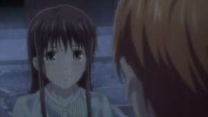 Kyo's always a little feral when it's raining. It's clear that he isn't taking Tohru's glad epiphany well when his pupils narrow into feline slits. It's incredible how he manages to interpret the right answer—and get pissed off about it—before she even says a word. “I thought you loved your mom best,” he says, and it's hard to imagine him finding anything worse to say at this moment. Because as we know from the last episode, she thought so too, jerk. It's taken this long for Tohru to acknowledge that it's actually Kyo she loves best, and he's ready to ruin it. Like everything else in Kyo's life, it's self-sabotage summoned by his own guilt. Kyo doesn't think he deserves to be happy and he's determined to make that come true.