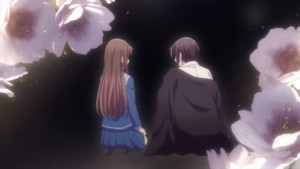 If you have ever lost somebody close, you know it's like they're frozen in a specific time. Since they passed, you've made new friends, watched new anime, and maybe gone through new life events, none of which they have an opinion about since they died before any of this happened. (Is it obvious I'm speaking from experience here?) The worst part is, the longer it's been, the more that the you who knew them differs from the you that exists in the present. You still love them and miss them, but they feel further and further away from your daily life. One of the ways to keep them close is to simply not move forward with new things, the way Tohru was hesitant to do. But it takes a near-death experience for Tohru to consider that maybe her mom wouldn't have wanted her daughter to freeze in place. When Tohru's unconscious, this thought is illustrated by Tohru walking from next to her mother to next to Kyo, and then Kyo walking forward without her. Even if she can't come, she wants Kyo to move into the future.