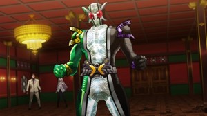 Terui's confrontation with the other Dopant (she turns out to be using the Scream memory, by the way) outside is followed up on primarily to finally formally introduce the big bad villain group for this story, with Yukiji Bando just outing himself to the Riders after it previously looked like he might try slinking away. This is the other reason Tokime's been brought in: it's so she can witness Bando and react to him in indication of her obvious past ties to the group. It's in and around this part of the plot where I might fully question FUUTO PI's ability to keep new viewers invested in the same way as returning fans of the live-action series. Many of the references and ties to the previous Museum organization that get mentioned here are mostly surface-level flavor, but there are just enough bits thrown out over the course of the episode, particularly regarding Philip's own past with the family, that it could come off as a denser lore-dump than necessary. I admit this is a tricky aspect for me to fairly assess, deep into all this content as I personally am. And speaking from that perspective, I do like the potential of these connections to make the world of Kamen Rider W feel a little more layered, and maybe even provide some new vectors for Philip's character to follow. Feels like he's gotten more distinguishing developments throughout this show than Tokime, the alleged center of this new story. Not that I'm really complaining about that.