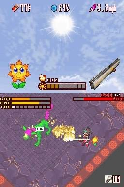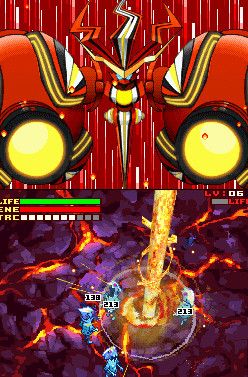 Switching to an action-oriented approach reveals the shallow nature of the combat. Locking on with R and pressing Y repeatedly becomes very grating after minutes. There are multiple weapons and characters, but neither provides a compelling experience: there's no real depth to the combat. It's true that there are tactical advantages to switching between the two characters, as you will frequently hit SELECT to swap between the two. However, there are no real combos, and the weapons effects don't feel significant. There are noteworthy additions to the gameplay that do add to the experience. The ability to change weather at a moment's notice does add some nice depth to the various dungeons. Also, there are a ton of optional side quests to find throughout the towns. But, no matter how many quests you embark on, they ultimately boil down to a repetitive, uninspired button masher. One of the more unnecessary additions to the game has to be the space shooting segments. These sequences, which occur at the end of boss battles, are puzzling at best. Not only is it incredibly disruptive to the flow of the game, it is simply not very good as well. The controls are counter-intuitive: both shooting and movement are controlled with the stylus. This creates an unfortunate problem where you cannot shoot and move at the same time. Although the rest of Lunar Knights can be played with the D-Pad, these shooter sections must be played with the stylus, and they suffer a great deal due to this unnatural mechanic. As a shooter, it's uninspired—the graphics are primitive, at best, and the enemy designs leave a lot to be desired. The incredible production values of Lunar Knights can be commended, but the execution is so amateurish that the game would've been better without the unnecessary extras. Voice acting, for example, is immediately grating. The character designs suffer from generic anime syndrome: this stuff is worse than the average Saturday morning fare. The copious amounts of dialog become instantly tiresome. Thankfully, the player can hold down B to skip through the text faster. There are full-motion anime cutscenes littered throughout the game, but with such uninspired characters and shoddy dialog, the value of such cinemas seems diminished. Lunar Knights is the kind of game that wants to be loved. It's not that the game plays horribly; it doesn't. However, the game simply doesn't offer enough variety or innovation to capture a player's attention for too long. Underneath the boring characters and lackluster voice acting is an interesting story: too bad the game doesn't do much to encourage the player to actually find out. |