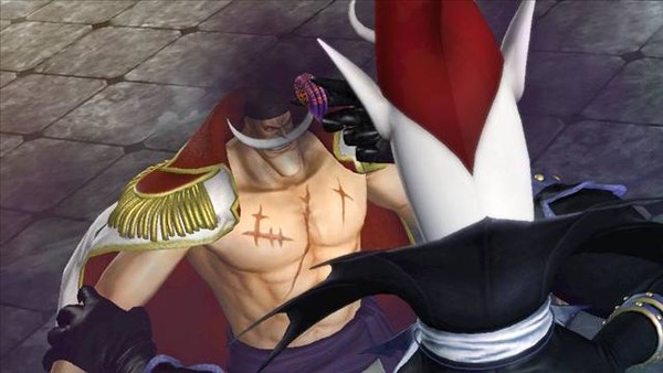 Pirate Warriors 2 is back to basics, back to boxes, isthmuses, and cannon fodder. Each level of throws your chosen pirate from box to box with ill-defined (sometimes, frustratingly, unstated) goals like "Protect Nami!" or "Hold the Fort!" Sometimes the objective is to kill an enemy with a life bar, a foe that receives equal fanfare whether they're a faceless marine captain or late-series bad guy Akainu. When enough enemies with life bars are killed you go on to the next level, which is nearly identical to the one you just played, except with a different coat of paint, so it looks like Impel Down instead of Restaurant Baratie. If your life bar is emptied (unlikely, given the nap-time difficulty) or if certain allies retreat from the battle (slightly more likely, given the garbage AI), you lose and repeat the stage from the start; there are no checkpoints. The cast of playable characters has about tripled, now buffed out with series badasses like Aokiji and Bartholomew Kuma. Each character plays functionally the same, but in a wonderfully overpowered way where they all have dozens of moves, and most of those moves are primed to clear entire rooms at once. Certain characters are stronger than others, but all of them can drop a field of destruction with a few button presses, the only difference being whether it's in the form of a blizzard, or a sandstorm, or smoke, or fire, or ghosts, or giant, stomping feet. They all have cool, anime-authentic poses when they do their super moves, and the game's most charming nod to the show and manga is preserving character's strengths and weaknesses even when they would fly in the face of balance (whatever balance you could claim a Dynasty Warriors game has). Usopp is immune to Perona's ghosts, Luffy can't be turned to stone by Hancock, and so on.
