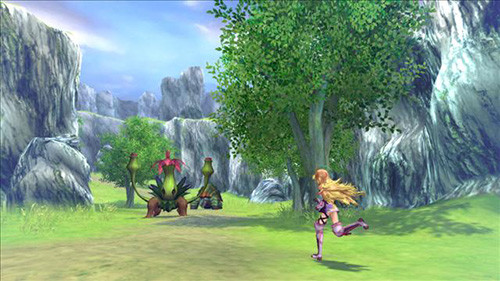 The world of Rieze Maxia looks to be in pretty good shape. Invisible spirits fuel technology through a symbiotic relationship with humans and it all seems pretty equilibrious, but for the clandestine use of spyrix, a power that is in some way detrimental to the environment, although nobody bothers to explain the hows and whys of it for about ten hours. Xillia is slow. Even for a Tales game, a series that meters out its plot and mechanics at the speed of thick pudding, Xillia takes its time. For a game whose main character is the literal instantiation of a god you would expect some bombast, or vitality, or something, but Milla's powers are stripped away after only an hour of secret research lab infiltrating and overpowered spirit battles. After she is rendered human – or human-ish – Xillia slips back into the Tales norm. Milla and co. embark on the usual, low stakes cross-country journey filled with proper noun defining exposition and battles against uninspiring wolves and waddling cheepits. But for a game pace so slowly it is so blatantly, obviously rushed. Xillia was released two years ago in Japan, timed for the 15th anniversary of the series, and is noticeably shorter than most other Tales games. It's only about thirty hours long even if you do a respectable amount of side quests, but more telling than the length is its creators absolute void of enthusiasm. Most of the game is spent navigating from town to town through a succession of box canyons that are only differentiated by their time of day or their season. Some exist in perpetual night, some are covered in snow, but all are unenthusiastic squiggles of pathways between impassable walls. The puzzle dungeons Tales is known for are completely absent. Maybe excising them entirely is a good idea – the puzzles in previous games tended to be rudimentary in scope and the eternal in length – but in their place is nothing. Nothing but canyons between you and your destination, each three or four screens long, each of those screens navigable in about thirty seconds, if you do it as the crow flies. So to stymie your progress every canyon is filled with chests, haphazardly scattered sacks, and resource nodes glimmering out of tree branches and protuberances of rock. There are one or two hidden treasures per area that grant visible attachments, like aviator sunglasses and stuffed animals, or unlock new and powerful combat skills. Everything else, be it sack or shimmering spot, contains either cash or interchangeable trade items: griffin talons, puffballs, magical ore, fish scales, which, whether they be magical or mundane, all exist to be converted into generic resource points to level up the weapon shop or the armor shop or the item shop.
