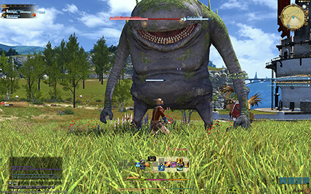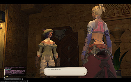 So it's Final Fantasy 101, really. Load times and graphics on PS4 are about what a reasonably good PC can put out, which is a nice improvement from the thirty-second travel times and muddy look of the PS3 version. This is especially valuable during FATEs, the large-scale public quests that sometimes involve dozens of players at a time, and could bog the PS3 down to a standstill. XIV's art style is a bit more workmanlike than the intricate and overwhelming vistas of the budget-busting mainline games, but it still exudes charm and Final Fantasy panache in its ruffled chocobo feathers and conspicuous cleavage windows in otherwise very classy velveteen doublets. There's nothing really unique about this world's mishmash of medieval castles, alchemy laboratories, and poisonous swamps. Final Fantasy XIV's graphical strengths are in its craft and its texture. The world feels whole and consistent, even when you're hopping from a woodland elf city to a seaside resort. This is a game about moss-covered roofs and puffy shirtsleeves, and it looks like more thought went into any of these individual things than every spike on every oversized World of Warcraft shoulder pad put together. Controller support is shockingly good. You have assignable palettes which you open with the shoulder buttons to use attacks and actions, and close to revert back to standard functions like jumping and moving through menus. The major clumsiness comes in targeting monsters in the heat of battle, which isn't so much imprecise as it requires you learn a strange finger dexterity if you plan on playing one of the tanking classes, since holding aggro on multiple targets requires a higher amount of finger fumbling and mental bandwidth. The system works, but it is complicated. Mouse and keyboard support is available for those who can't bear the thought of using anything else in an MMO, even on a console, but a controller's pretty good for pushing through stacks of craftable material. With any recipe just a few button pushes away long-term crafting sessions on the couch, or in bed using a Vita's remote play, take on a meditative appeal. There's all the quality of life features you'd expect from a modern MMO: fast travel, ad-hoc public quests, and an automated party finder for dungeons and bosses. It may be almost unthinkable to question their inclusion in this age of player convenience, but Final Fantasy XI was hellbent on resisting every bit nicety introduced by games like World of Warcraft. This is a proper, current MMO. Its also puts its legacy to work, hard. This is absolutely a Final Fantasy game; not one with a concrete ending, or an unbearably melodramatic plot, or a crystalline web to level up in, but one where you get a chocobo bodyguard at level 30 that, after you've hung out with it for a while, you can decide whether you want it to be a butt-taunting murder fowl or a Choco Regen-casting healer bird. Despite the number in the title, this won't satisfy a craving for a mainline Final Fantasy, but it does have all the trappings of some really good fanservice.