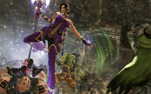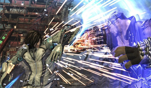 Anarchy Reigns is a game divided. It's in the way the storyline splits to follow the grimacing, chainsaw-slinging Jack Cayman and the sleeker, slightly nicer Leo Victorion. It's in the difference between the game's focused missions and the more aimless exploration of a shattered city. More than anything else, though, it's in the gulf that sets apart a disappointing single-player plotline and a serving of deliriously fun multiplayer carnage. The background of Anarchy Reigns is conveyed in a few loading screens, and it all comes down to this: things in the future are bad, and nowhere are they worse than in the city of Altambra, where towering lizardmen and surprisingly well-armed mutant gangs roam amid the ruins. In this dilapidated venue, the player can choose between Jack's “Black Side” story and Leo's White one, though the two cover similar territory. The profane, thoroughly cynical bounty hunter and the clean-cut, partway idealistic cybrid-cop prowl one section of Altambra at a time, unlocking specific missions once they've pounded enough enemies. Along the way, they'll encounter a motley parade of bosses—some resurrected from MadWorld, some invented for Anarchy Reigns.