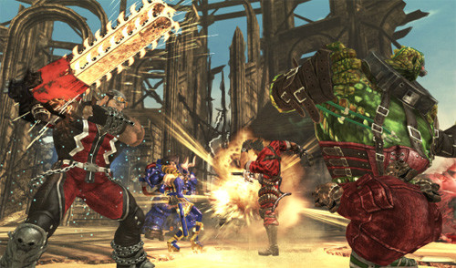 Between Bayonetta and the undervalued Vanquish, Platinum Games shows an undeniable gift for chaotic variety, and it's at the core of Anarchy Reigns. Every playable character, from the two heroes to the smorgasbord of unlockable faces, gets a largely unique set of aerial moves, dashing strikes, a rising sweep, and a momentary burst of destructive power. Each combatant's special ability is easily enabled through a shoulder button and a power meter. The raucous cyborg Big Bull whips off his missile backpack and swings it like a hammer. Leo's comrade Sasha plays with a fleet of frigid remotes. The obese mechanic Oinkie temporarily transforms into a green-skinned hulk. Rin Rin and her sisters imbue their weapons with fire, ice, and electricity. And Jack relies on the same telescoping chainsaw gauntlet that saw him through MadWorld, only it's now two chainsaws. That says something about Anarchy Reigns. It's all enjoyable at first, rampaging through one punk horde after another, seeing just how much of Altambra can be casually destroyed, and riding to the top of a skeletal skyscraper just to dive into the payment below. Yet it wears off rapidly. Fairly small and limited in their diversions, the Altambra neighborhoods are just there to set up the game's various missions, and those have problems of their own. Aside from the boss encounters, most of the missions are unmemorable in their aims. It's usually a matter of destroying a certain number of enemies, protecting some hapless Bar-Bot, or enduring a mediocre mini-game. Scoring high in one mission unlocks the next, but those who earn fewer points have to make up the difference by replaying missions or brawling around the city. Neither really excites upon a return trip. It's all at least visually striking, though the soundtrack is a morass of forgettable beats about mutants and ruthlessness. The most memorable sights of a solo Anarchy Reigns run are the bosses, but that's due more to their elaborate appearances than the challenges they put up. The story around all of them remains the stuff of trashy comics; there are hyper-macho heroes, women whose chests and asses are introduced before their faces, and moments of stony-faced gravitas. Even if the serious tones worked in Anarchy Reigns (and they usually don't), we've seen much of this before, right down to the grizzled, uncaring veteran hired by a fallen hero's daughter. The lighter scenes remain just as familiar, though the localizers certainly embrace it. Jack's most persistent ally is the Baron, a pimp who bears “F*CK OFF” on his gold teeth and refers to himself as “this token black guy.” Does that make it better or worse? One thing is evident: Anarchy Reigns is less gory than MadWorld's dark and heavy-handed satire. For all of its gruesome, atavistic overkill, the game pulls punches. Major characters bleed normally, but random thugs explode into showers of blood that's Kool-Aid blue instead of red. And while every boss died a hideous death in MadWorld, they're spared in Anarchy Reigns just so they can join the heroes later on…and add to the sense that the one-player mode is just there to feed the better half of the game. Anarchy Reigns gives itself away at the title screen, highlighting “multiplayer” by default when the first menu scrolls up. There's a standard complement of two-player cage fights, flag-capturing diversions, tag battles, and whopping 16-player melee. The real strength of it lies in the character lineup and the variable hazards of the stages. Altambra might not be intriguing when you're exploring it alone, but its multi-tiered environments become excellent playfields when rocket-powered robot bulls, piston-armed cyborgs, and other misfit warriors are tearing into each other all at once. Nor do the levels remain static. Submarines and jets bombard the landscape, black holes toss characters around the map, and power-ups appear at random. Then there's the Deathball arena, which rewards actual teamwork in its matches.