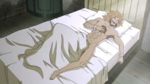 This also might be the worst looking episode so far. The direction – while still fine – is more tepid than usual. The biggest issue is that there's a serious case of off-model-itis going around. The characters are drawn badly and the colors are flat. Germán's appearance is the most noticeably inconsistent. He has about twice his usual bulk throughout the episode. The extra weight tends to migrate from his shoulders to his butt between shots, so he alternates between looking like The Incredible Hulk and a Nicki Minaj backup dancer. It's funnier than the episode's intended comedy. There are also prominent animation errors – at one point a character recites a line without moving her mouth. It must've been a blessing for the animators that the chatty doctor-Horror's mouth is obscured.
