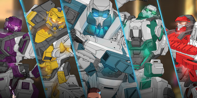 Many fans of animation and nerd culture around the world revere Rooster Teeth, the Austin-based production studio that began a slow climb to fame back in 2003 with Red vs. Blue, a series of online animated shorts created with the Halo engine about two platoons of bored soldiers skirmishing in a box canyon. Sometimes surprisingly bleak or thoughtful, but usually mischievous and silly, these simple 5-minute (give or take) shorts built the foundation of a robust entertainment company, and allowed them to stretch out and experiment, more and more, with the medium of animation. In the wake of RT's global smash hit RWBY, an anime-influenced 3DCG series that mixes a subversive sense of humor and cinematic action with magical girl business, Rooster Teeth have taken another ambitious step forward, presenting Gen:LOCK, a flashy mecha action series anchored by a legit movie star in Michael B Jordan. Gen:LOCK may not be Japanese animation, but it's clearly inspired by the medium and created by ardent fans of anime, including Jordan himself. In my book, that makes it worth a look. As the curtain rises on Gen:LOCK, we meet Julian Chase, a pilot in the Polity state's Vanguard military deployment. The Polity, seemingly a successor to the US, Canada, and Mexico, is locked in conflict with the Union, an encroaching autocratic regime that appears poised to invade North America. Chase takes a break from duty to introduce his girlfriend Miranda (also a pilot, but of one of the Vanguard's ground-based mechs) to his family, but the fun is cut short by that very invasion, and in the ensuing Battle of New York, we learn some ominous things about the Union. First of all, their war machines have a clear technological edge over the Polity; the ground-based units, with insect-like multiple limbs, are both larger and faster than the Union's stomping Battletech-esque suits. The Union also holds an interesting battlefield trump card in weaponized nanomachines, ‘gray goo’ that's programmed to disable or kill anyone not ready to cooperate with their forces. Chase appears to turn the tide of the battle and delay the nanomachines from overrunning the city, allowing a large-scale evacuation, but at the cost of his life. Four years later, Miranda and her team seem to have moved on from the loss of their ace pilot, but they're locked in a grinding slog against the Union, who've been steadily pushing Vanguard forces westward since taking NYC. Just when things are looking up for the Polity with the completion of the Anvil, a high-tech research and defense base with a main cannon big enough to provide direct-fire support to much of the Midwest, the Union attacks. Once again, the Polity are only barely holding the line—but then they're saved by a towering, fantastically agile mecha that turns the tide of the battle in seconds. Soon, they meet the pilot: Julian Chase, dead four years. Chase isn't alive, exactly, but he's been kept around, in secret, by other means. His circumstances, along with a new technology dubbed GenLock (no jokes about old subtitling systems, please!), allow the pilot to enjoy a kind of Cartesian duality – his consciousness can completely unmoor itself from his wrecked body, and upload to a Holon, one of the aforementioned towering, cutting-edge mecha suits. Dr. Weller, a gregarious and charming mad scientist, tries to explain that the GenLock program is the next evolution of mankind; meanwhile, the Anvil's stern commanding officer is obliged to keep reminding him that it was actually developed as a weapons system. Then, we meet the rest of the pilots, Chase's new squadmates: a fighter pilot, a covert operations agent, a tank driver, and a cool teen computer hacker. You'd think the hacker would be out of place with the combat veterans, but it somehow works—there's something satisfyingly Snow Crash about it. These characters almost immediately come off as a bit atypical. They're not cut from the classic Gatchaman mold of the gallant hero, his bad-boy rival, the girl, the kid, and the fat guy; there's something surprising about each of them. Yasamin, the fighter pilot, is from a dissident family, but she still seems the most conventional of the group, a gritty, no-nonsense fighter. Valentina, the spy, is appropriately taciturn, and carries an interesting little secret about their personality that emerges when the team is a little more comfortable together. Cammy, the teen hacker, promptly starts digging into the software of their new robots to gain an edge that way. Kazu, the tank pilot-turned-cook, is a fists-first-questions-later kinda guy, but also a moody musician, and he doesn't actually speak English. He's portrayed by veteran seiyuu Koichi Yamadera, and it's nice that the producers didn't force him to stumble through the show speaking English. He sticks to Japanese, in his inimitably smoky “I've seen it all, and it all exhausts me” delivery, and everyone simply understands him. Shades of Gunhed! Having a crew of living, able-bodied pilots controlling the Holons carries risks and rewards. You can upload your consciousness to the robot, but it'll leave your body in a coma-like state back at the base. If things go sideways, your mind could be trapped on board the Holon! Lots of pilots age out of the program, which makes the pool of potential pilots small and turbulent. And since Holon pilots all upload their minds to a shared network, they can communicate instantaneously and even share sensory data—but there are short, Ultraman-like limitations on how long they can employ such methods. The pilots start to learn their roles, but soon enough, their technology is matched by the Union, and they find themselves facing off against a mysterious enemy mecha. That Union mecha suddenly starts speaking to Chase and his team with a ghostly, staticky voice—Chase's own voice. Queasily ambiguous identity, the whole “What if you aren't really you anymore?” question, lays the foundation for some of th