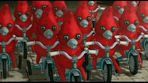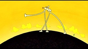 Things start to look back up in the sixth film Happy Machine. Directed by Masaaki Yuasa, this short tells the story of a baby who is suddenly forced from the security of his nursery and onto a strange alien world. With no one to look after him, the baby soon finds himself making new friends and heading on a bizarre and humourous adventure across the land. Its mix of odd visuals and a well thought out multilayered story makes this surrealist film one of the highlights in the collection.